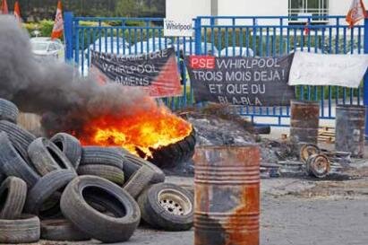 Depuis une dizaine de jours, les salariés de Whirlpool brûlent des pneus à l'entrée de l'usine, signe de leur mécontentement