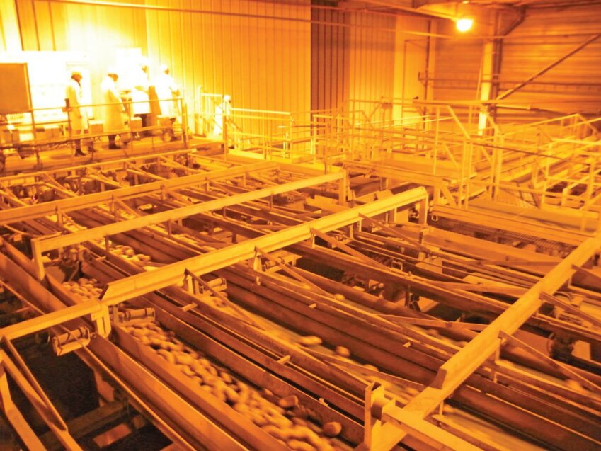 La visite de Xavier Bertrand, ministre du Travail, de l’Emploi et de la Santé, sur le site de l’usine McCain de Harnes a pris du relief après le passage obligé le long de la chaîne de production, avant une discussion avec des représentants syndicaux et des salariés. La chaîne de production forme un ensemble de tapis qui s’entrelacent au gré des machines qui traitent la pomme de terre. Le calibrage ne retient que les plus gros tubercules. Les pommes de terre filent à plus ou moins brève allure entre les étapes de lavage (en circuit fermé), d’épluchage et de cuisson à la vapeur. A Harnes, 27 tonnes sont intégralement traitées toutes les heures. Tout au long de la chaîne, on remarque que très peu de pommes de terre portent des tâches. La réponse se trouve un peu plus loin : après avoir été coupées, elles arrivent sur un tapis qui les charrie grâce à un courant d’eau. Après le découpage en frites, ces dernières sont poussées par un courant d’air : sans tâche et calibrées au millimètre. Magique ? Pas de révélation de la part de la direction : “secret industriel, pas de photo”. La technique pour faire les frites s’apparente à un ponçage réglé par reconnaissance visuelle sur les pommes de terre qui passent à un endroit de la chaîne. Un scanner ? Nouveau sourire de la direction…