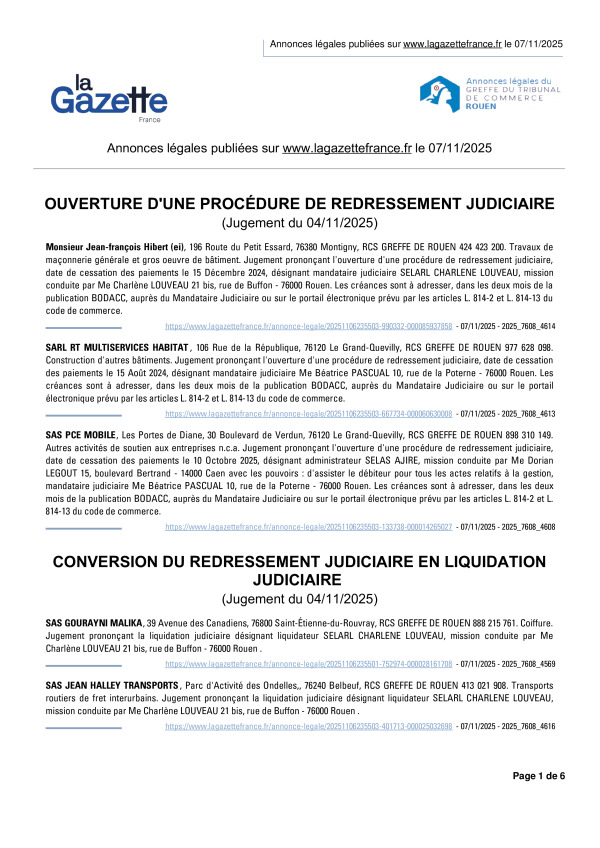 Annonces légales publiées le 07/11/2025