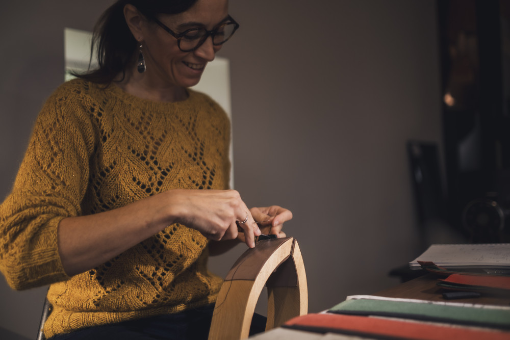 Elle a ensuite poursuivi sa carrière à Carcassonne dans la Maison Goyard, spécialiste de la malleterie, où elle découvre sa voie. "J’ai fait mes armes sur les machines à coudre triple entrainement", se souvient-elle. Elle déménage en Auvergne où elle travaille pour un sous-traitant d’Hermès en maroquinerie. Elle y apprend le piquage à la main, le travail de finition et d’excellence du cuir. Séduite par la matière et le métier, convaincue que le cuir est porteur d’avenir, elle décide de rester dans cette filière. "Avec le cuir, il n’y a pas beaucoup de limites. On peut aussi bien faire des vêtements ou des accessoires", constate-t-elle.