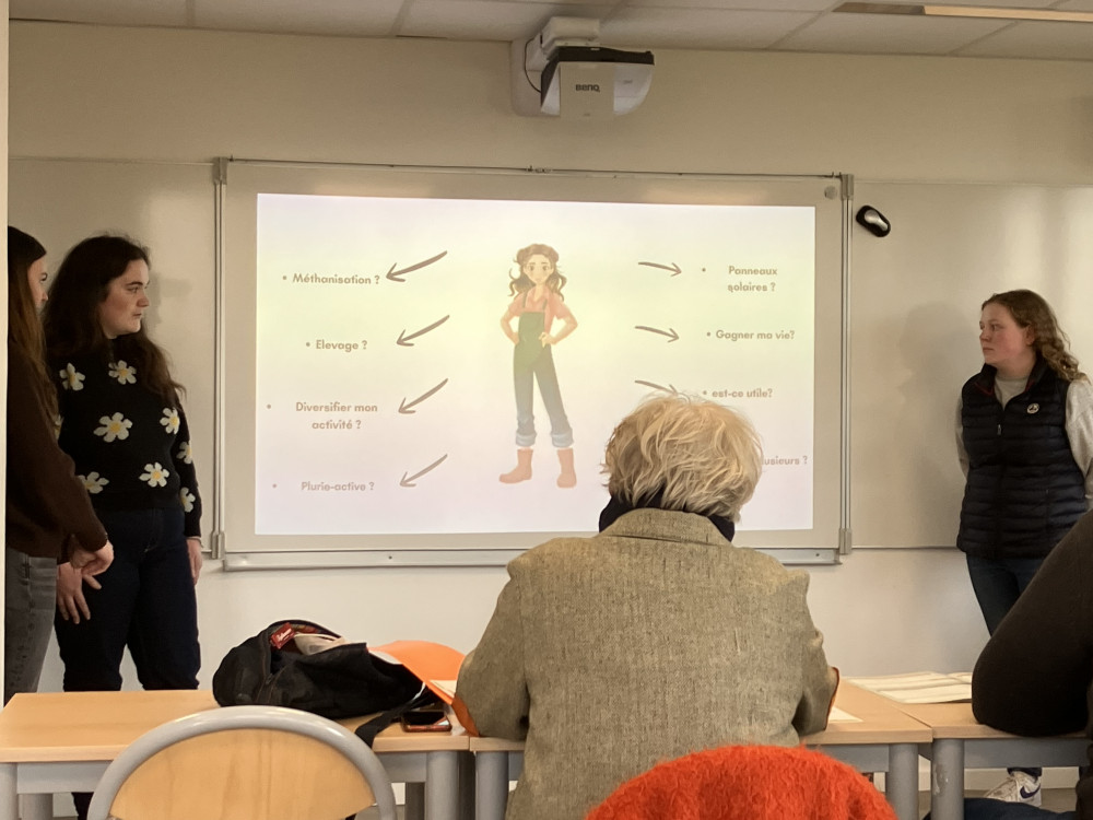 «Ici, ce sont des terminales bac pro, CGEA, conduite et gestion de l'entreprise agricole en option polyculture élevage. Ils sont à fond dans le projet, ils s'intéressent à tout, ils ont créé des noms d'équipes. Il y a six groupes. On leur a donné une grille de notation. On leur a dit que vous allez être noté sur le concept, si l'idée est originale, sur la faisabilité aussi. Il y a six thématiques : digestat et préservation des sols, communiquer sur son projet de méthanisation, intrants et sources d'approvisionnement, les énergies renouvelables dans l'agriculture, assurer et financer son projet de méthanisation. Et le dernier, l'avenir de l'agriculture», détaille Isabelle Demailly, leur enseignante en économie-gestion et professeur principal.